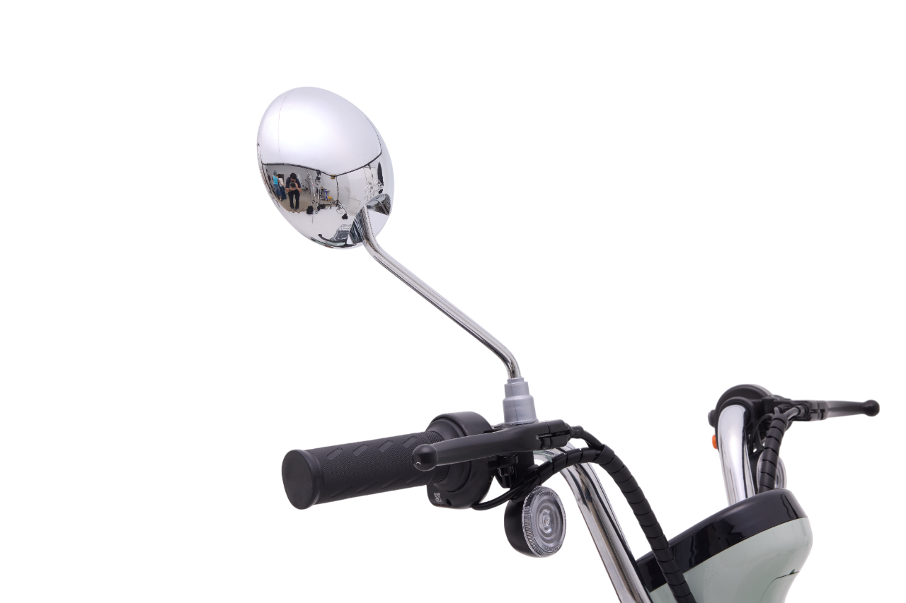 外枠はクロームメッキを施し、内臓されたLEDライトが安全な走行をサポート