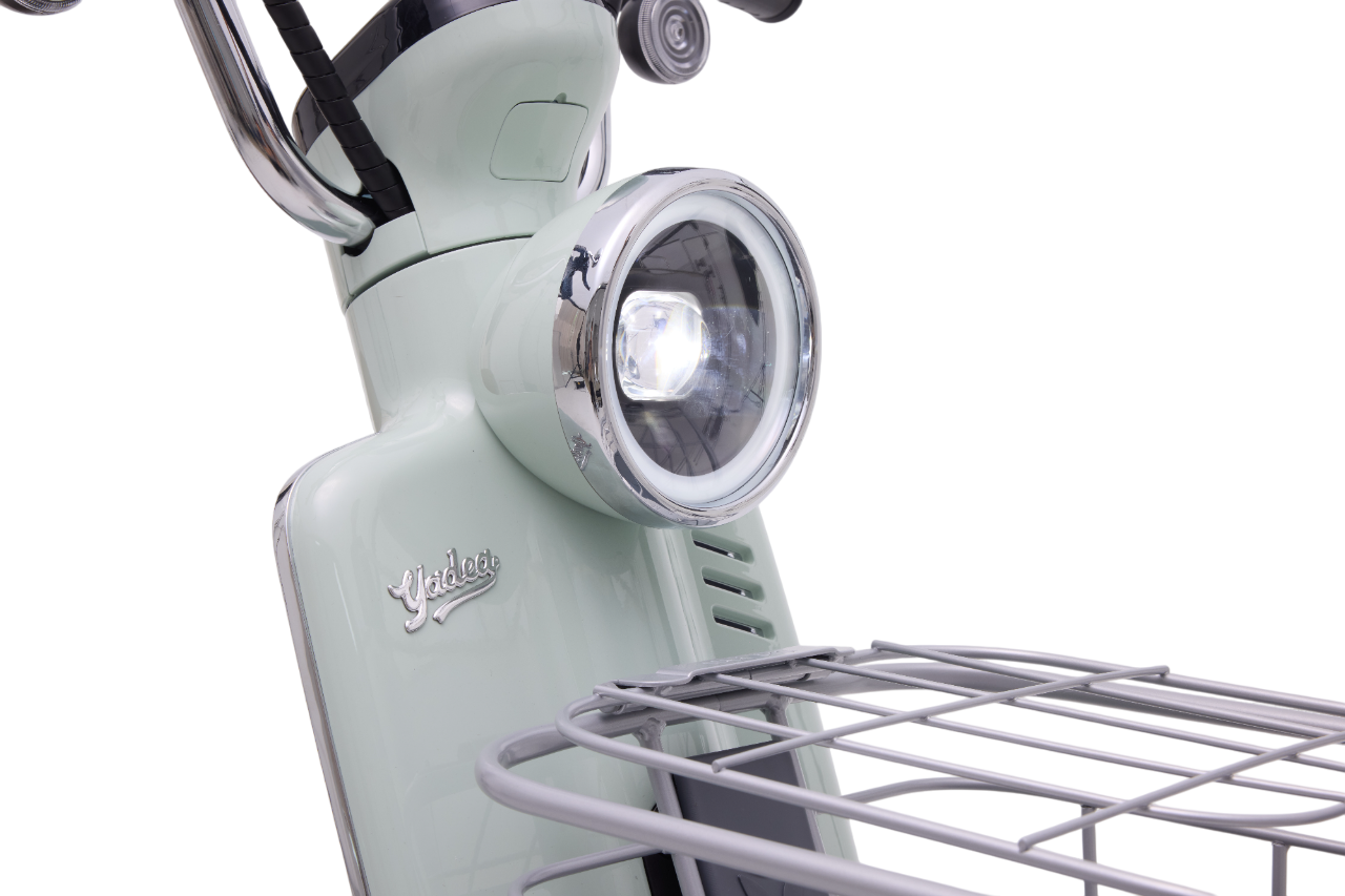 外枠はクロームメッキを施し、内臓されたLEDライトが安全な走行をサポート